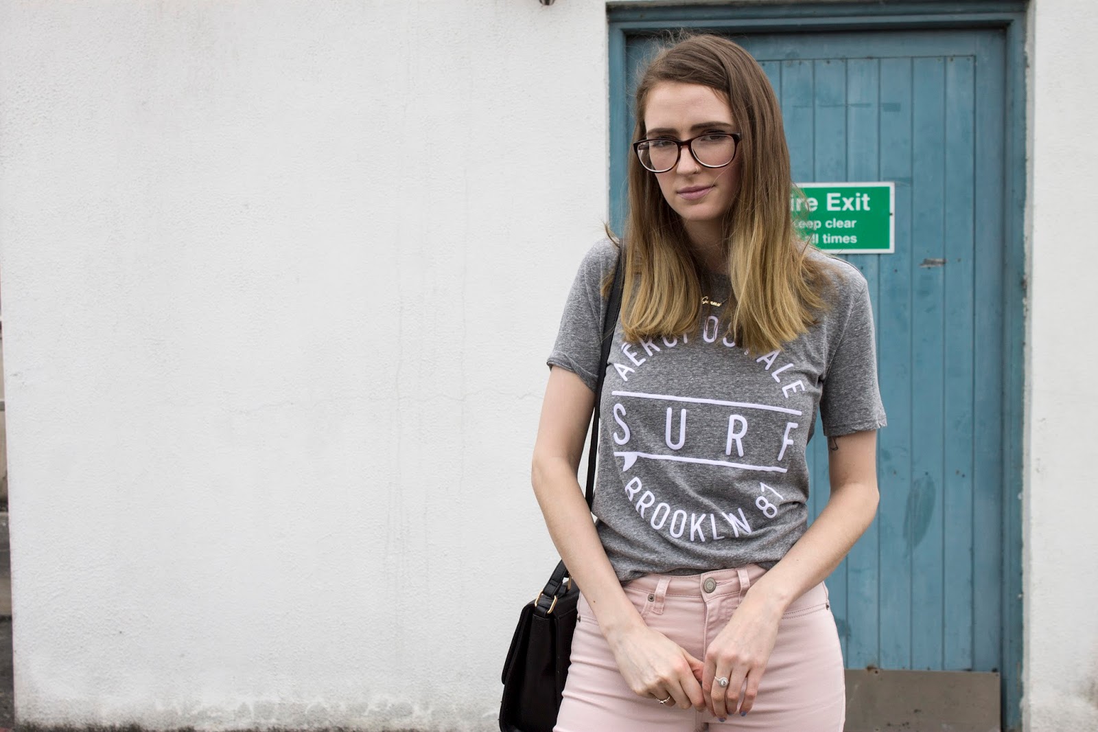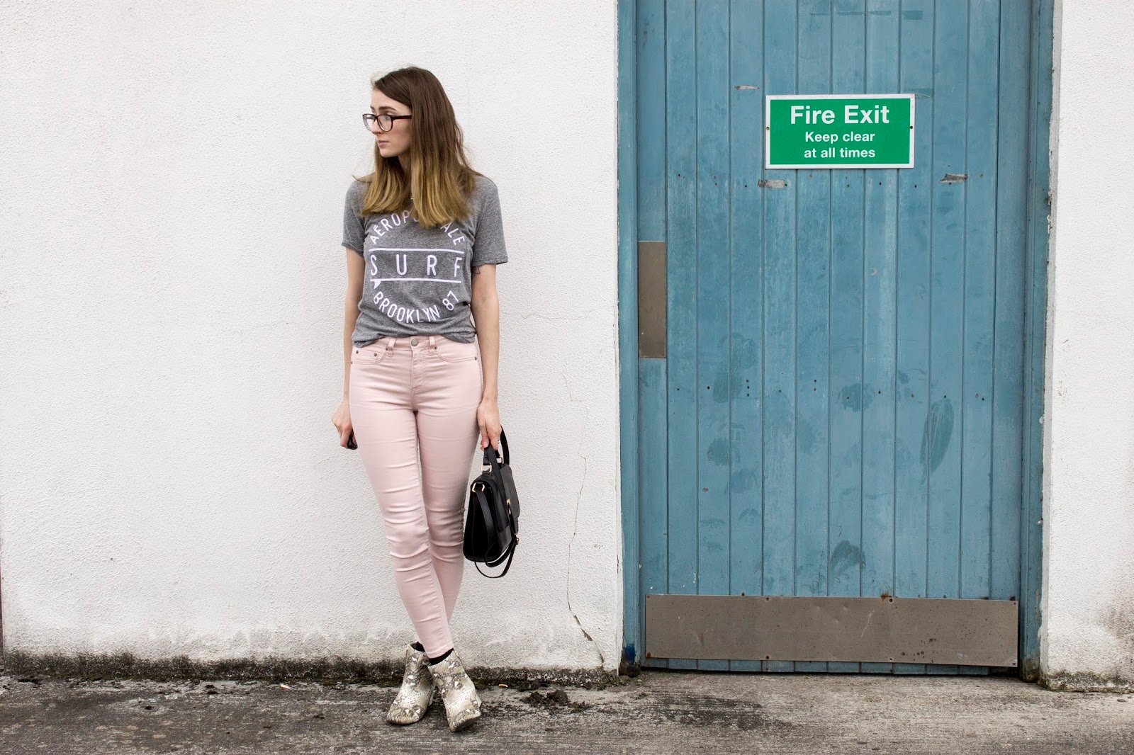 I never thought I could wear leopard print and snakeprint in the same outfit, but in this I think it really works.. I’m equally as obsessed with both of these printed items for jazzing up an otherwise normal outfit, but together they are a force to be reckoned with. But speaking of the outfit underneath, I’m really digging the pink/grey combo. I picked these jeans and a tee up in Aeropostale in Liffey Valley just over a week ago and I had been dying to wear them together. The jeans are super soft and a really great fit, and I’m also planning an all pink look with them which will be super girly and feminine for summer. Aeropostale were so kind to offer me a giftcard to pick out a few pieces to style up for you guys, so there’ll be a few more new looks coming up on the blog in the next few weeks.